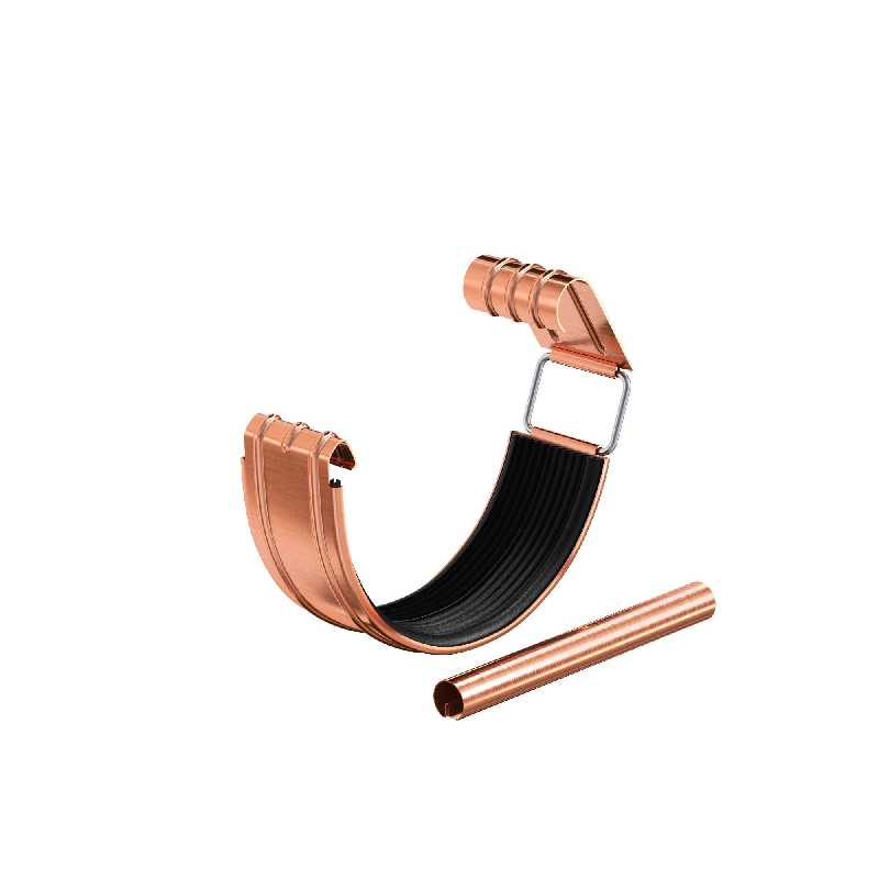 Соединитель желоба в комплекте предназначен для последовательного соединения двух желобов, либо желоба и угла (внешнего или внутреннего). Предотвращает протекание воды в местах соединений и является компенсатором линейного расширения металла. Имеет полноценный резиновый профиль, благодаря которому не требует мер по дополнительной герметизации. Наличие универсального замка (пряжки) позволяет использовать его многократно и исключает возможности его поломки при частом открытии или закрытии. Наличие ребра жесткости придает детали дополнительную прочность. Соединитель желоба поставляется в комплекте с элементом жесткости, который представляет собой трубку из оцинкованной стали, либо из меди, толщиной 0,7 мм, которая по своей конструкции повторяет завиток желоба.С помощью элемента жесткости на 50% увеличивается жесткость конструкции в местах соединения желобов, что упрощает работу по расчету и установке водосточной системы, а также не требуется установка дополнительных крюков в местах стыка желобов (стыковку желобов можно производить в любом месте, вне зависимости от шага крюков).